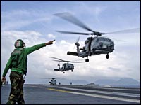 Now that the Navy with a large carrier USS Abraham Lincoln is in place with hundreds of other Marines deployed to the affected Tsumani area we are really in business. The 25 or so special helicopters the Navy has can and has saved thousands of lives. These helicopters can land almost anywhere and that is what makes the greatest difference.