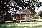 Evergreen plantation has over twenty-five slave houses neatly built in a row. Neatly planted are the famous Evergreen Oaks with their hanging Spanish Moss. Most of the slave houses or quarters are being rehabilitated today. We were given the opportunity to enter one and take photographs.